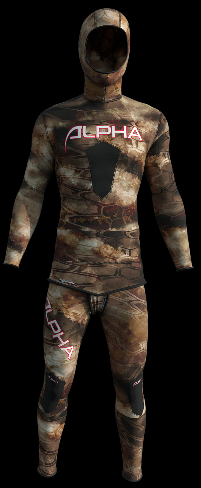 Muta su misura da pescasub realizzata in neoprene idrorepellente foderato daiwabo superelastico mimetico esclusivo alpha wetsuits